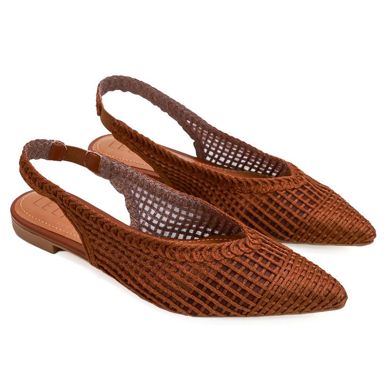 Slingback Catarina é moderna e bem elegante. Confeccionado em material sintético, todo trabalhado a mão tornando a peça única, com cores super versáteis a cara da nova estação. Possui bico fino que alogam a silhueta.