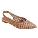 Slingback Catarina é moderna e bem elegante. Confeccionado em material sintético, todo trabalhado a mão tornando a peça única, com cores super versáteis a cara da nova estação. Possui bico fino que alogam a silhueta.