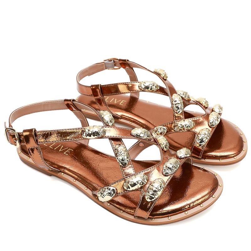 A Rasteira Imbituba traz muito conforto e praticidade. Mantém toda sofisticação nessa combinação com aplicações e cores metalizadas, deixando-a ainda mais chic.