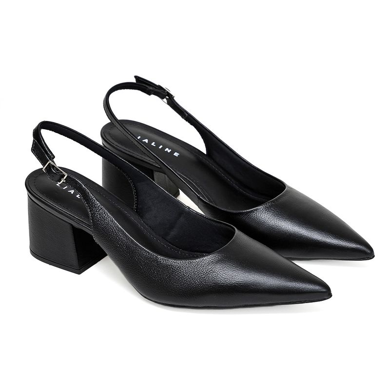 O Slingback Coroa em couro , une elegância e conforto. Possui bico fino e salto bloco médio garantindo conforto e sofisticação. Ideal para compor looks contemporâneos.