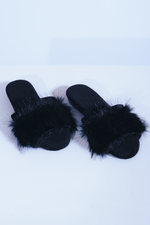 Com design todo em preto e aplicação de pelinhos na faixa frontal, a peça traduz elegância atemporal e o máximo de conforto. Sua textura macia envolve os pés com delicadeza, trazendo aconchego e estilo até nos momentos mais simples.