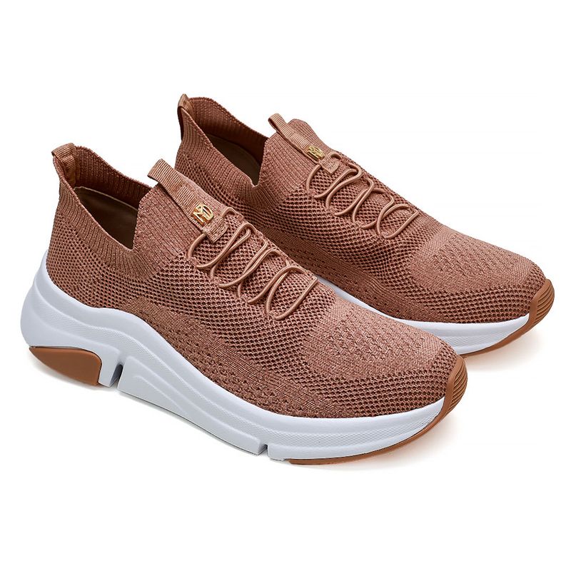 Tênis esportivo com cabedal em malha knit respirável na cor rose e solado robusto em EVA branco, que garante leveza e amortecimento. Design moderno e slip-on (sem cadarço tradicional), facilitando o calce e oferecendo conforto para o uso diário.