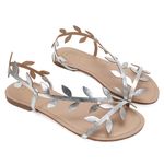 A delicadeza da natureza inspira o visual desta rasteira, que traz tiras em formato de folhas para um toque romântico e moderno. Leve e confortável, ela abraça o pé com suavidade e adiciona charme imediato a qualquer produção.