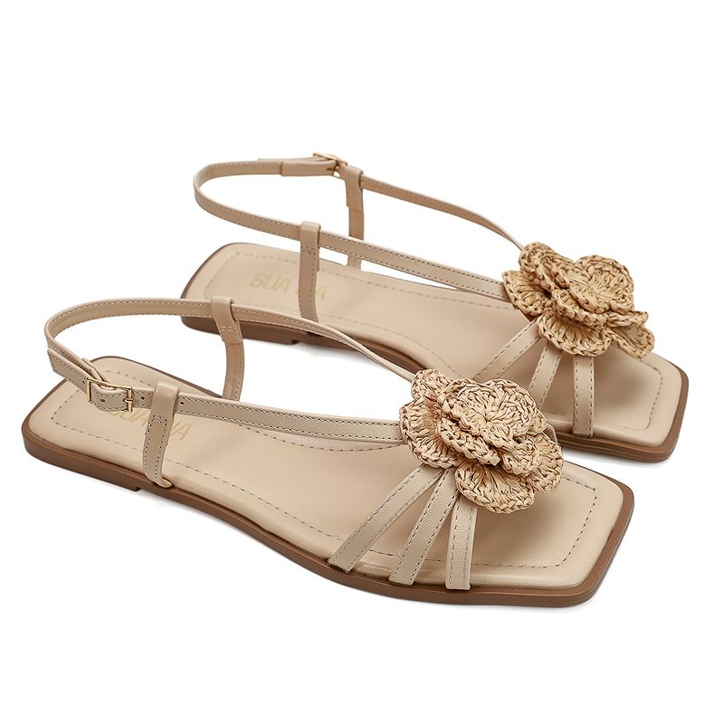 Rasteira Catete, ideal para quem busca delicadeza e charme em cada detalhe. O destaque fica por conta da aplicação floral, que traz um toque feminino e elegante ao modelo.