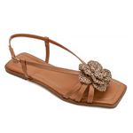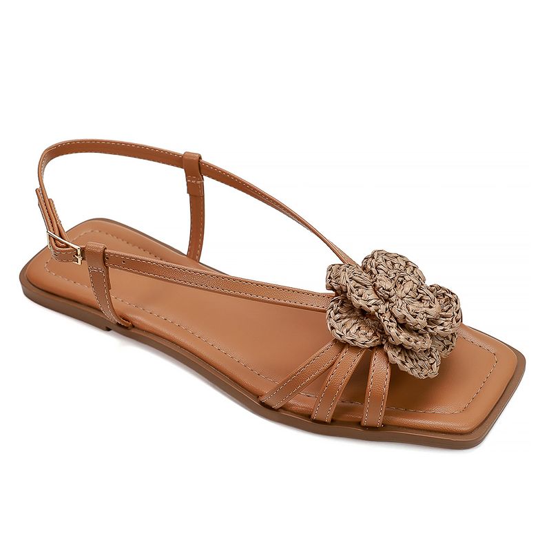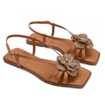Rasteira Catete, ideal para quem busca delicadeza e charme em cada detalhe. O destaque fica por conta da aplicação floral, que traz um toque feminino e elegante ao modelo.