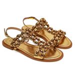 A Rasteira Tabatinga é o toque de luxo que seu look de verão precisa! Com tiras em acabamento metalizado e aplicação de maxi pedrarias douradas, o modelo traz brilho e elegância na medida certa. O fechamento por fivela lateral garante ajuste perfeito e conforto, enquanto o solado flat proporciona praticidade para o dia a dia. Um calçado que combina estilo, conforto e sofisticação.