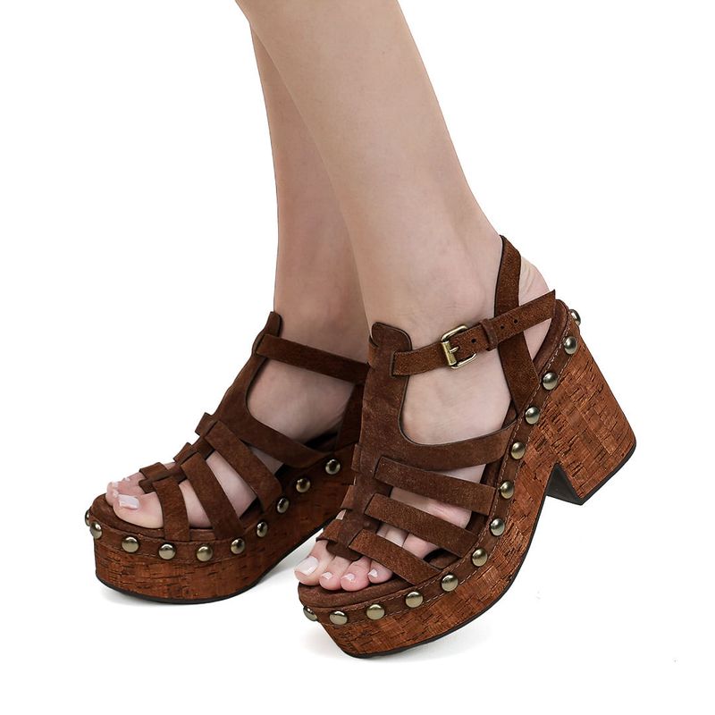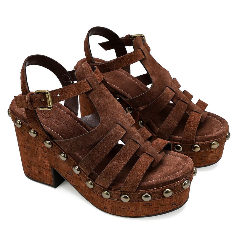 A Tuli traduz a essência do boho urbano com personalidade marcante. Seu cabedal em camurça macia com tiras bem posicionadas abraça o pé com firmeza e estilo, enquanto o salto plataforma em cortiça imprime leveza visual e conforto prolongado.