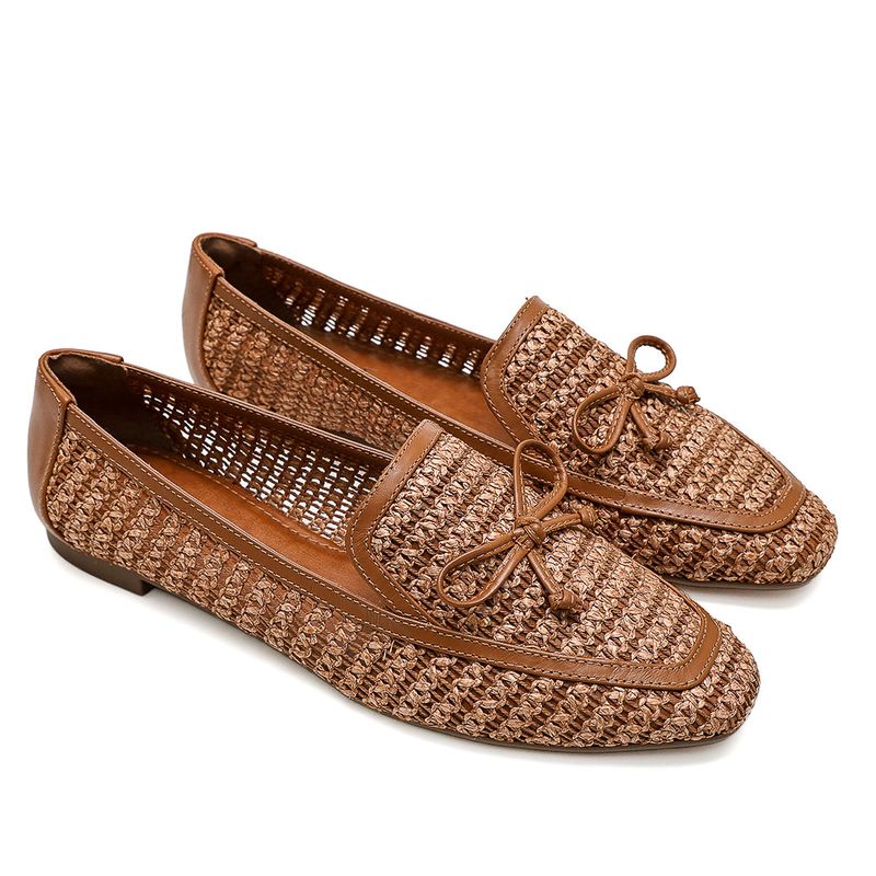Os loafers ou mocassim trazem praticidade e um toque trendy para a produção. Confortável e atemporal, é perfeito para qualquer ocasião e estação. O Mocassim Celina foi confeccionado em ráfia, um elemento natural, com acabamento em couro.