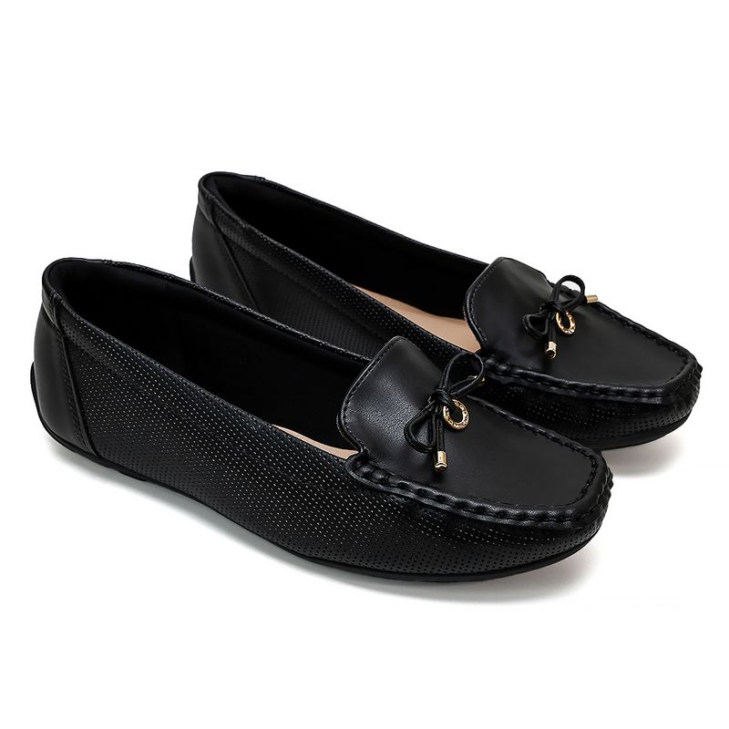 O Mocassim Judite é um clássico atemporal que une elegância e conforto. Produzido em material macio com acabamento perfurado nas laterais, o modelo oferece respirabilidade e um toque moderno ao visual. O laço delicado com ponteiras douradas adiciona charme e sofisticação, enquanto o solado emborrachado garante estabilidade e leveza ao caminhar.
